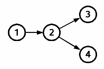 The graph in figure 2 has two leaves: check-ins 3 and 4. Check-in 2 has two children, check-ins 3 and 4. We call this state a fork.
